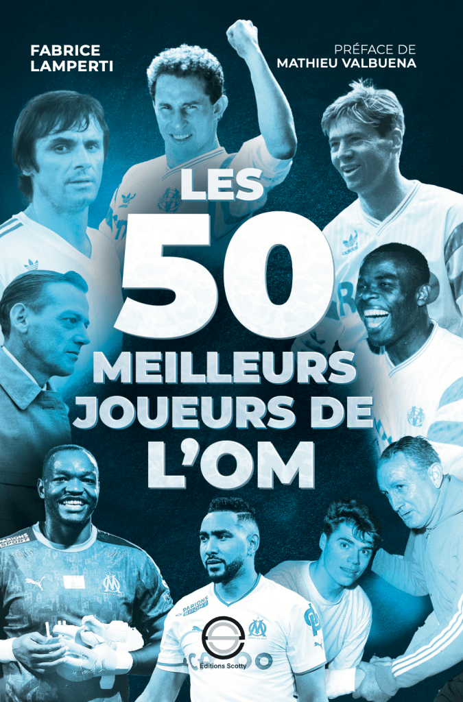 Les 50 meilleurs joueurs de l’OM de Fabrice Lamperti retrace la saga d’un club unique, en évoquant ses figures les plus légen- daires. Décennie après décennie, les buts, les succès, les exploits, les trophées et les stars défilent. Tous les héros du peuple marseil- lais sont là : Gunnar Andersson, Fabien Barthez, Larbi Ben Barek, Didier Deschamps, Éric Di Meco, Didier Drogba, Lucho Gonzalez, Roger Magnusson, Carlos Mozer, Jean-Pierre Papin, Abedi Pelé, Josip Skoblar, Chris Waddle, Mario Zatelli… Raymond Goethals et Bernard Tapie s’invitent eux aussi à la table des géants.